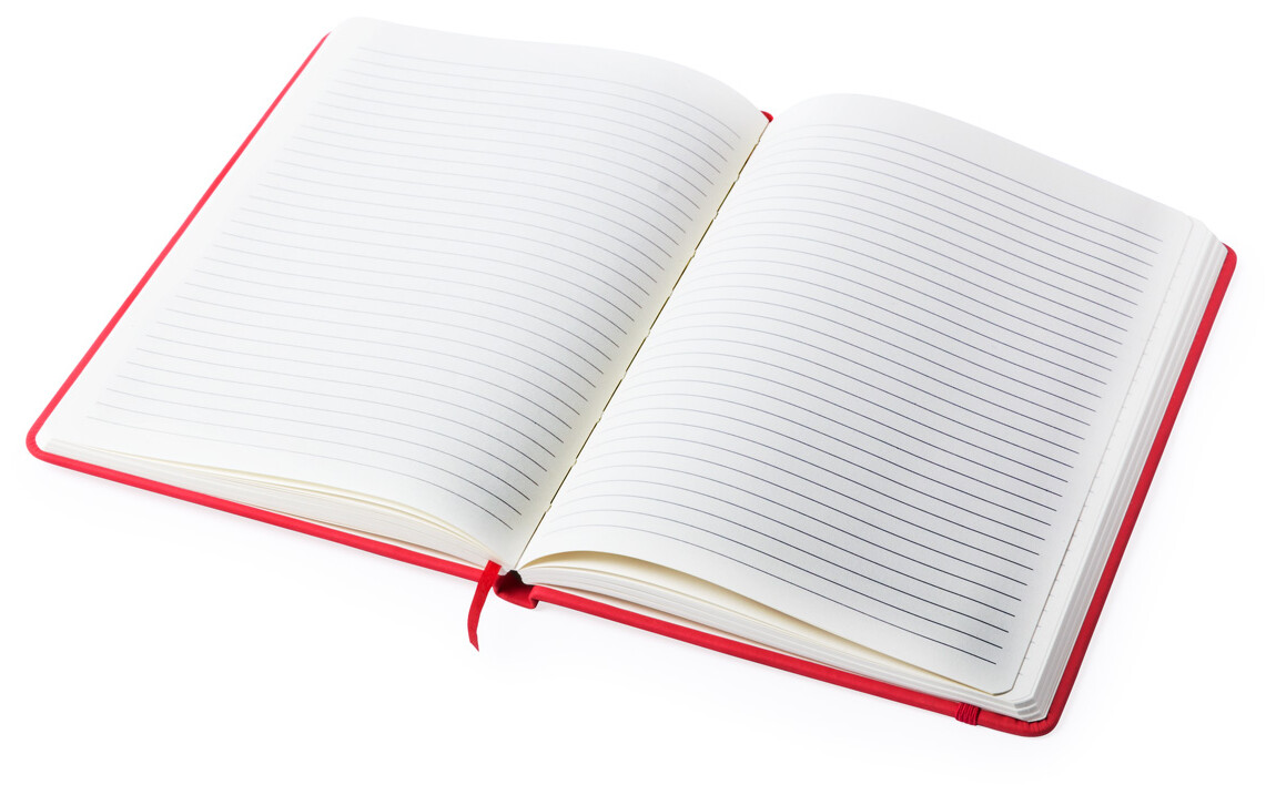 Blok s deskami z PU kůže, se 100 linkovanými listy a gumičkou.