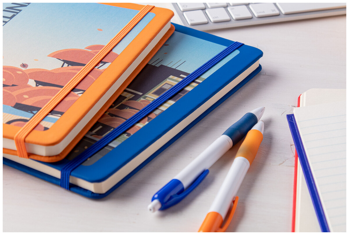 Blok s deskami z PU kůže, se 100 linkovanými listy a gumičkou.