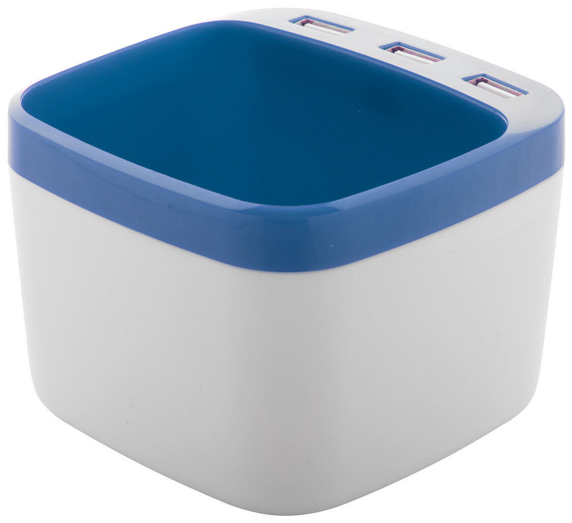 Stojánek na pera s USB hubem Warger, modrá, bílá
