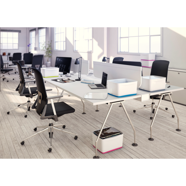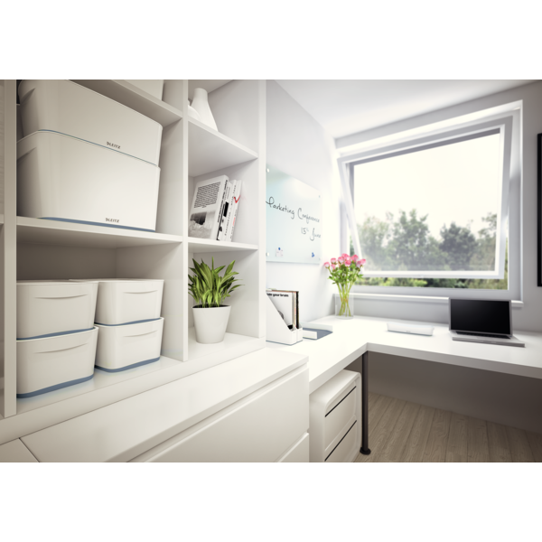 Modulární úložný systém Leitz Mybox vdechne vaší kanceláři jedinečný vzhled. Boxy jsou výjimečně pevné a z kvalitního materiálu. Dvoubarevné provedení a lesklý povrch vytváří unikátní dojem. Vytvořeno pro použití na stole nebo v šuplíku. Kompatibilní s Leitz MyBox® velikosti M nebo S pro ukládání psacích potřeb a menších předmětů. Skvělý doplněk zejména dvoubarevných výrobků řady WOW.