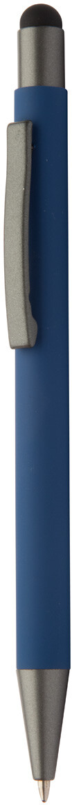 Hliníkové kuličkové a dotykové pero s pogumovaným povrchem, s modrou náplní.