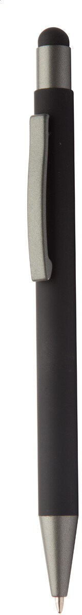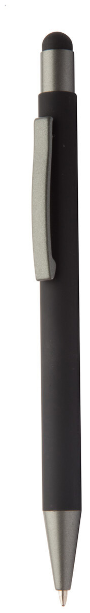Hliníkové kuličkové a dotykové pero s pogumovaným povrchem, s modrou náplní.