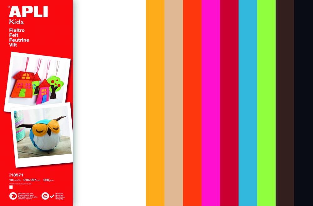 Filc - vysoce kvalitní materiál vhodný svým složením pro výtvarnou činnost dekoratérů, tak školní aktivity. Měkký a odolný materiál - obsahuje 40 % přírodní vlny, díky čemuž je výborně tvarovatelný. 100% recyklovatelný. Formát: 210 x 297 mm. Celkem 10 ks v balení.