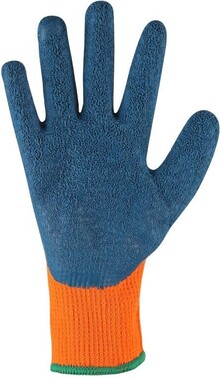 Zimní bezešvé rukavice z akrylového úpletu, dlaň a prsty povrstveny latexem s protiskluzovou úpravou pro lepší úchop a manipulaci.
