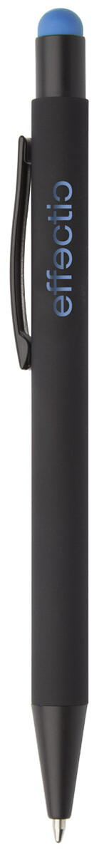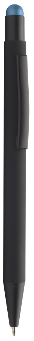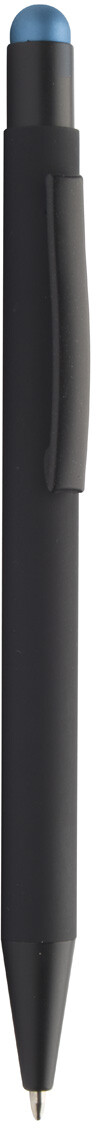 Hliníkové kuličkové a dotykové pero s pogumovanou úpravou a speciálním povrchem pro zrcadlový laser v barvě stylusu, s modrou náplní.
