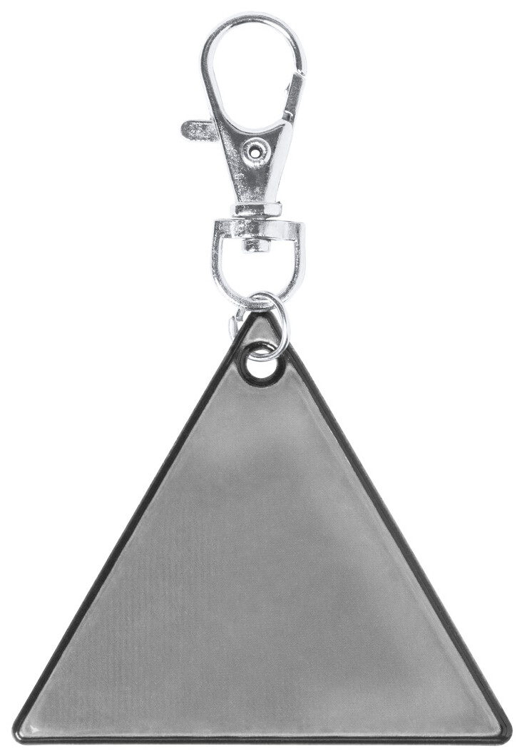 Trojúhelníkový reflexní přívěšek na klíče s karabinkou, PVC. Pouze pro propagační účely, se produkt nekvalifikuje jako osobní ochranný prostředek.