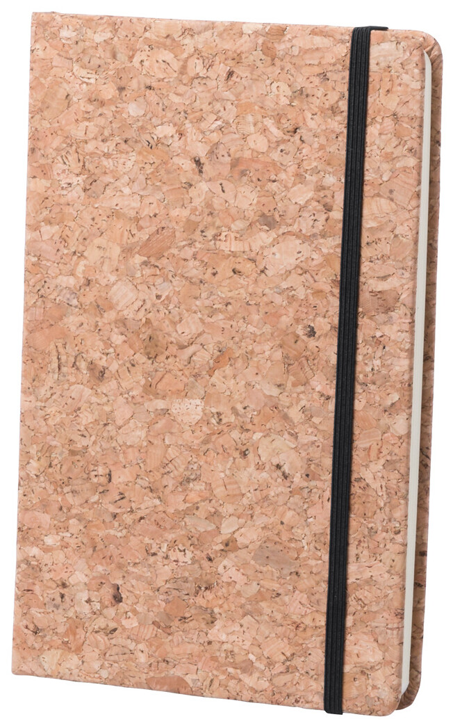 Blok A5 s deskami z přírodního korku s 80 čistými listy a gumičkou.