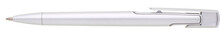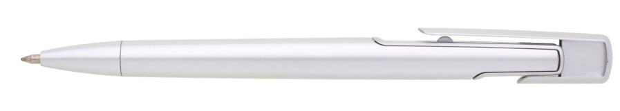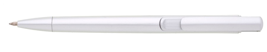 Plastová propiska GIDI s metalickým povrchem a efektním klipem ve stříbrné barvě, špička je stříbrná. Náplň velkoobsahová, modře píšící.