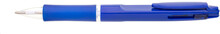 Kuličkové pero BARNA - 2 v 1, tzn.,že píše červeně a modře, vyrobeno z modrého plastu s gumovým gripem v barvě tužky.