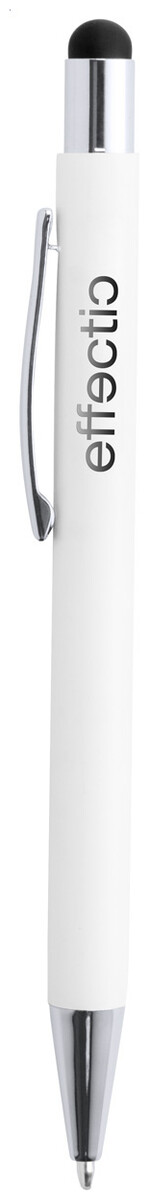 Hliníkové kuličkové a dotykové pero s pogumovanou úpravou a speciálním povrchem pro zrcadlový laser v barvě stylusu, s modrou náplní.