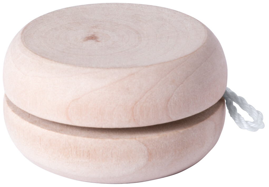 Dřevěné JoJo s bílou bavlněnou šňůrkou.