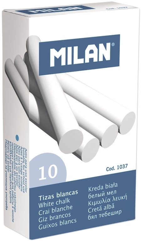 Bezprašné křídy Milan kulaté bílé, 10 kusů v krabičce.