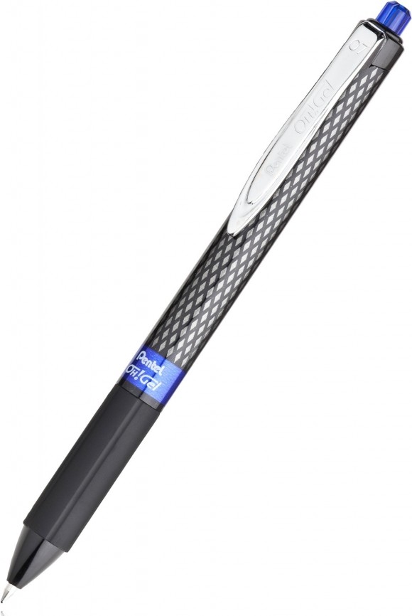 Gelové pero Oh!Gel, stopa 0,7 mm. S rychleschnoucím inkoustem. Moderní design s kovovými doplňky, mačkací mechanika. Speciálně tvarovaný pogumovaný grip pro pohodlné psaní. Barva doplňků odpovídá barvě náplně. Náhradní náplň LR7. Barva inkoustu a doplňků: modrá.