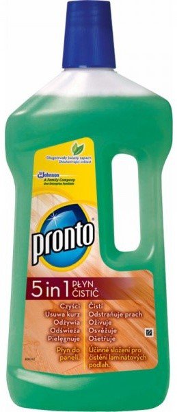 Pronto mýdlový čistič na laminátové a dřevěné podlahy – šetrný prostředek, který čistí a zároveň vyživuje dřevěné povrchy. Po použití zanechává svěží vůni a je ideální pro pravidelný úklid domácností i kanceláří.