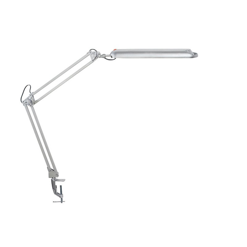 Energeticky úsporná lampa obsahuje zářivku G23/11W, denní světlo. Výkonnostní klasifikace A. Délka horního ramene 34 cm, dolního ramene 33 cm. Výška v základní poloze 45 cm. Stisknutí horního vypínače pro snadnou funkci ON/OFF. Norma CE. Náhradní zářivka G23-828 12 05. Varianta: svorka na desku stolu do 5,5 cm, barva: stříbrná.