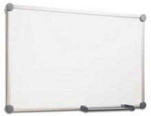 Speciální design, atraktivní stříbrný eloxovaný hliníkový rám. Tabule s kulatými plastovými spoji v rozích a odkládacím žlábkem. Povrch tabule je z oceli s plastovým nátěrem. Tabule je magnetická, popisovatelná a za sucha stíratelná. Odkládací žlábek na tužky je ve stejné barvě jako plastové spoje (modrá, šedá). Tabuli lze zavěsit na šířku nebo na výšku. Součástí dodávky je montážní materiál s excentrickou vložkou, která umožňuje dodatečné doladění pravého i levého úchytu tabule.