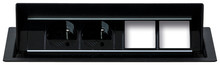 Konfigur. výklopný panel, 2x el. zásuvka, 2x volný slot pro 2 až 4 konektory KPV 4 černá