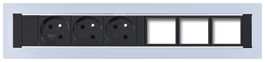 Konfigurovatelný pevný panel, 3x el. zásuvka, 3x volný slot pro 3 až 6 konektorů
