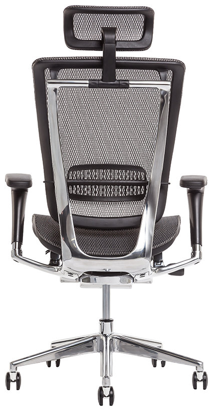 - Židle čalouněná samonosnou síťovinou zajišťující celodenní větrání zad
