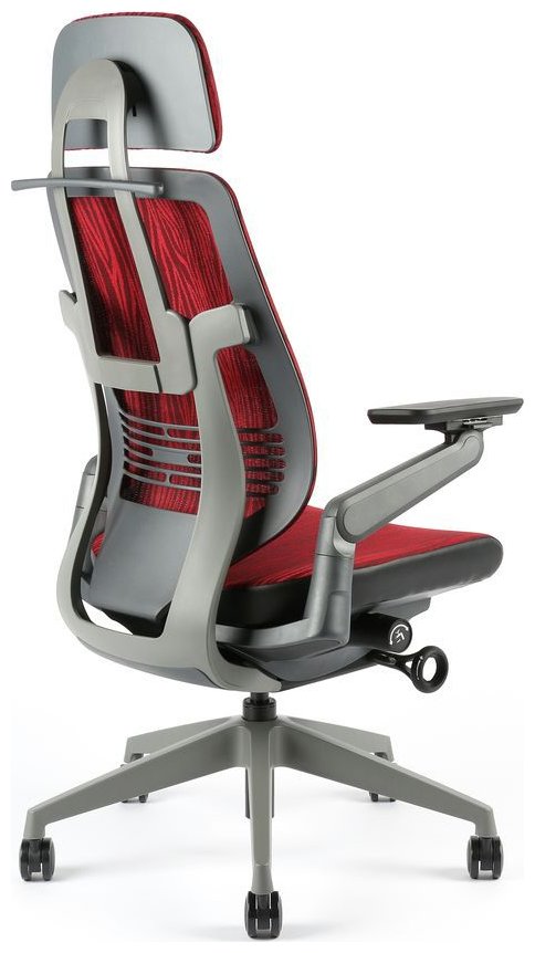 Kancelářská židle s područkami a podhlavníkem KARME MESH A-09 červená žíhaná