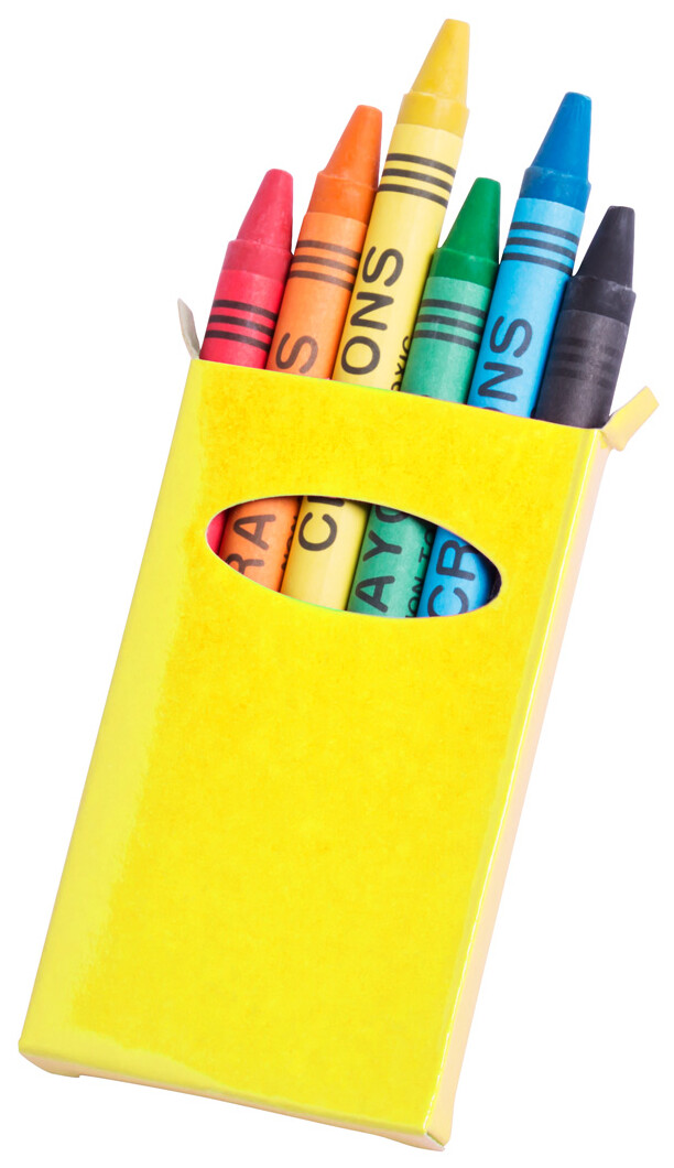 Voskovky v barevném papíru (6 ks) a v barevné papírové krabičce.
