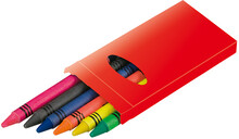 Voskovky v barevném papíru (6 ks) a v barevné papírové krabičce.