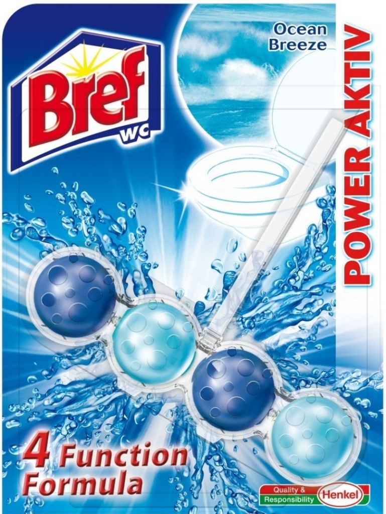 Bref WC Power Aktiv Ocean 50 g je účinný tuhý WC blok se svěží vůní oceánu, který zajistí hygienickou čistotu a dlouhotrvající svěžest při každém spláchnutí.