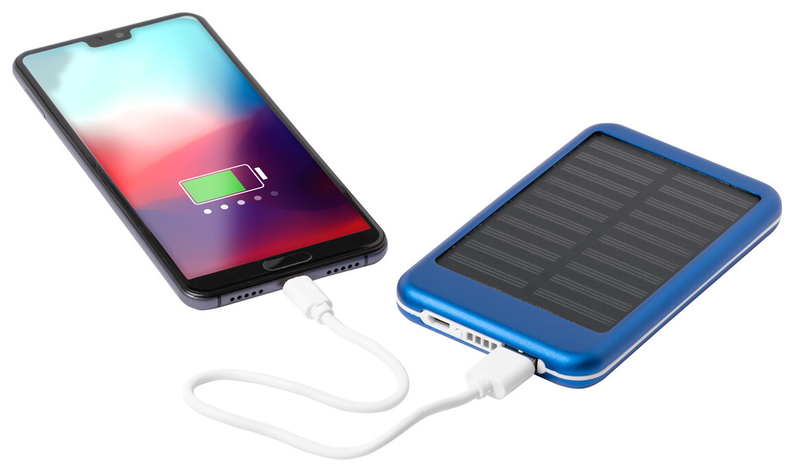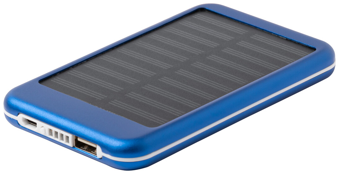 Hliníková USB power banka s 4000 mAh baterií a vestavěnou solární nabíječkou. Vč. micro USB nabíjecího kabelu.