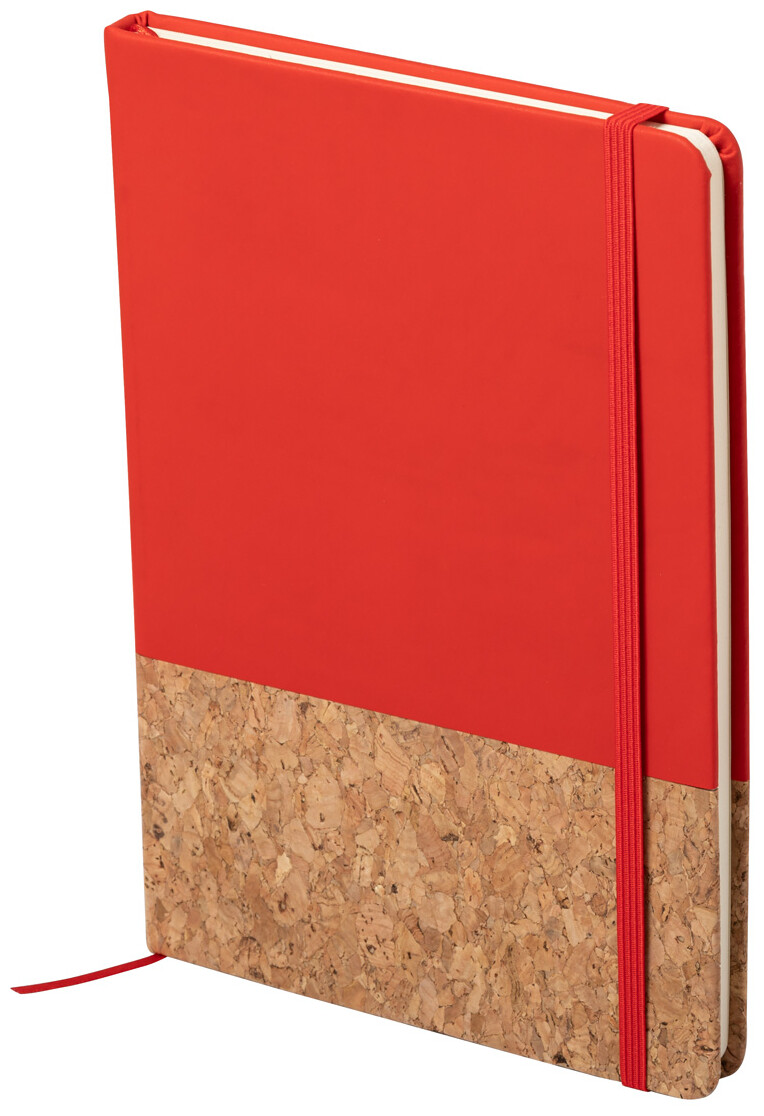 Blok A5 s deskami z přírodního korku a PU kůže, s gumičkou a 98 čistými listy.