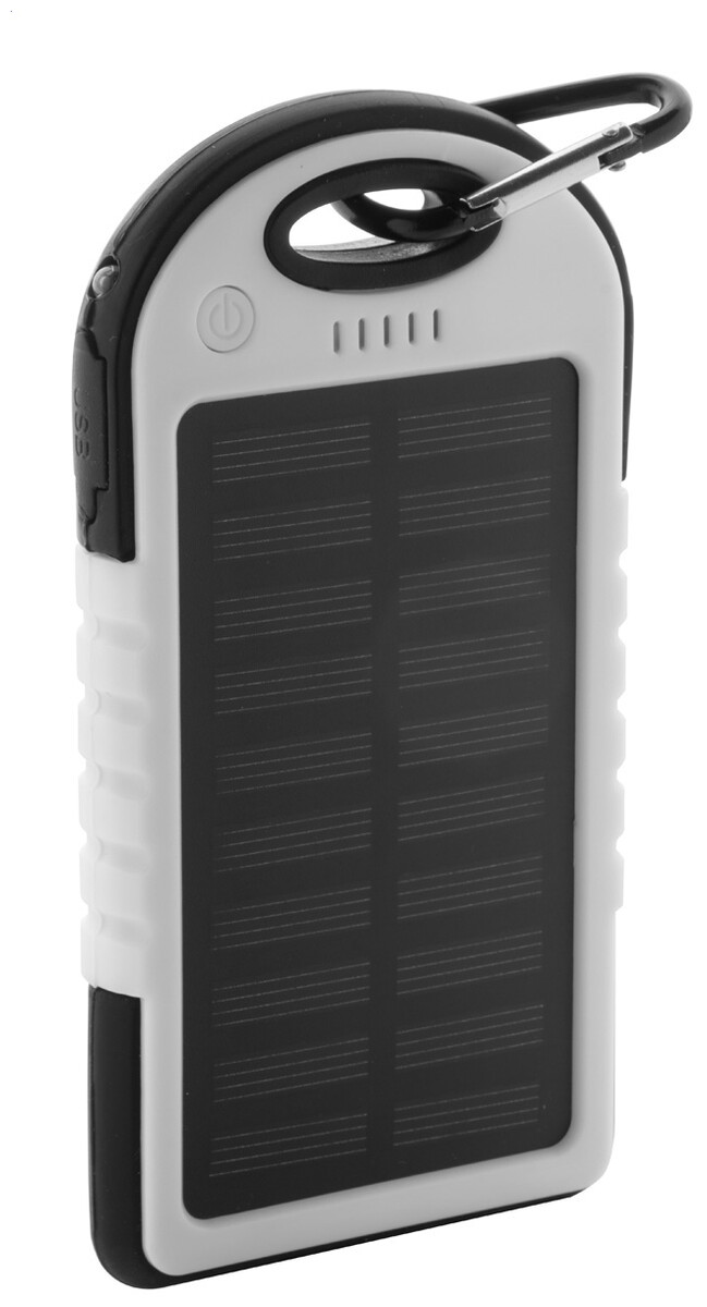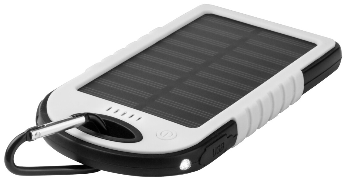 Plast/silikonová power banka s 4000 mAh baterií, solárním nabíjením a 1 LED diodou. Dodáváno vč. USB mikro kabelu.