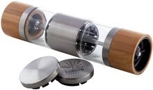 Oboustranný manuální mlýnek na sůl a pepř, nerez ocel/bambus, s keramickým mlýnkem.