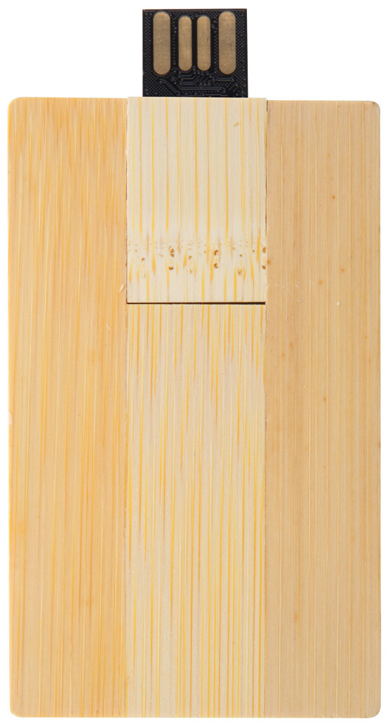 USB flash disk z bambusu, 4/8/16/32 GB, ve tvaru kreditní karty. USB 2.0.